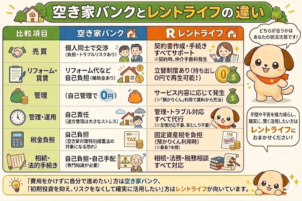 空き家バンク利用と不動産会社利用の比較